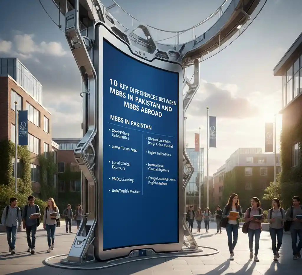 MBBS in Pakistan is highly competitive, merit-based, and regulated by PMDC. MBBS abroad, on the other hand, offers easier admission and lower competition but comes with its own challenges like cultural adjustment and licensing exams.